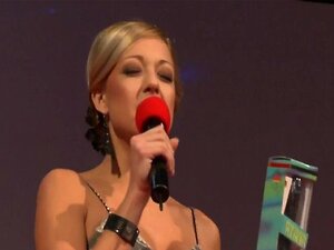 Une blonde sexy avec un corps sexy danse sur scène